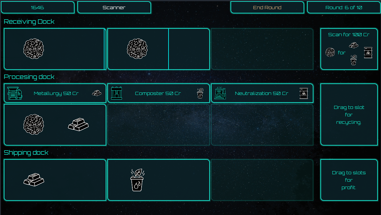- Scan: Use your high-tech scanner to identify valuable materials hidden within the scrap.